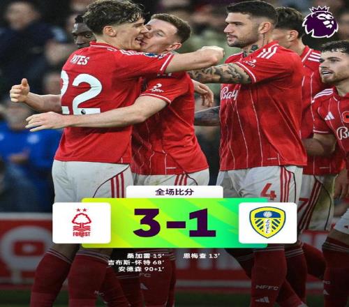 上半場(chǎng),恩梅查禁區(qū)內(nèi)低射破門(mén),幫助利茲聯(lián)1-0領(lǐng)先,隨后不久,桑加雷補(bǔ)射破門(mén),幫助諾丁漢森林1-1快速扳平。下半場(chǎng),吉布斯-懷特、安德森各進(jìn)一球,幫助諾丁漢森林3-1完成逆轉(zhuǎn)。