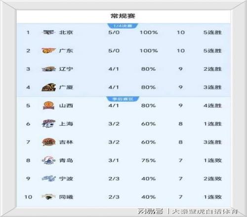 衛(wèi)冕冠軍廣廈男籃和山西男籃取勝之后,總戰(zhàn)績變?yōu)?勝1負,與遼寧一起排名前五,上海隊3勝2負排名第6;
