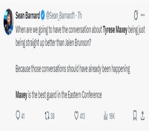 NBA記者Sean Branard寫道:我們應該好好聊聊一個問題,那就是馬克西與布倫森兩人誰更出色,我認為馬克西已經是東部最出色的后衛。