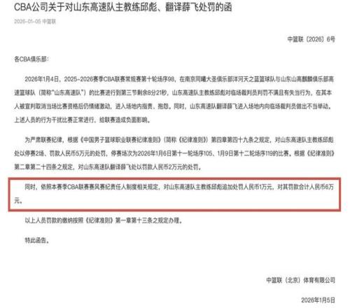 CBA官方正式發布通告:山東男籃主教練邱彪,由于在面對南京同曦的比賽中,對臨場裁判員判罰不滿,且有失當的行為,并且在取消比賽資格后仍有情緒激動的舉動,根據紀律準則規定,決定處以停賽2場,外加罰款5萬的處罰。此外,根據聯賽賽風賽紀責任人的相關規定,對邱彪追加處罰1萬,合計罰款6萬人民幣。